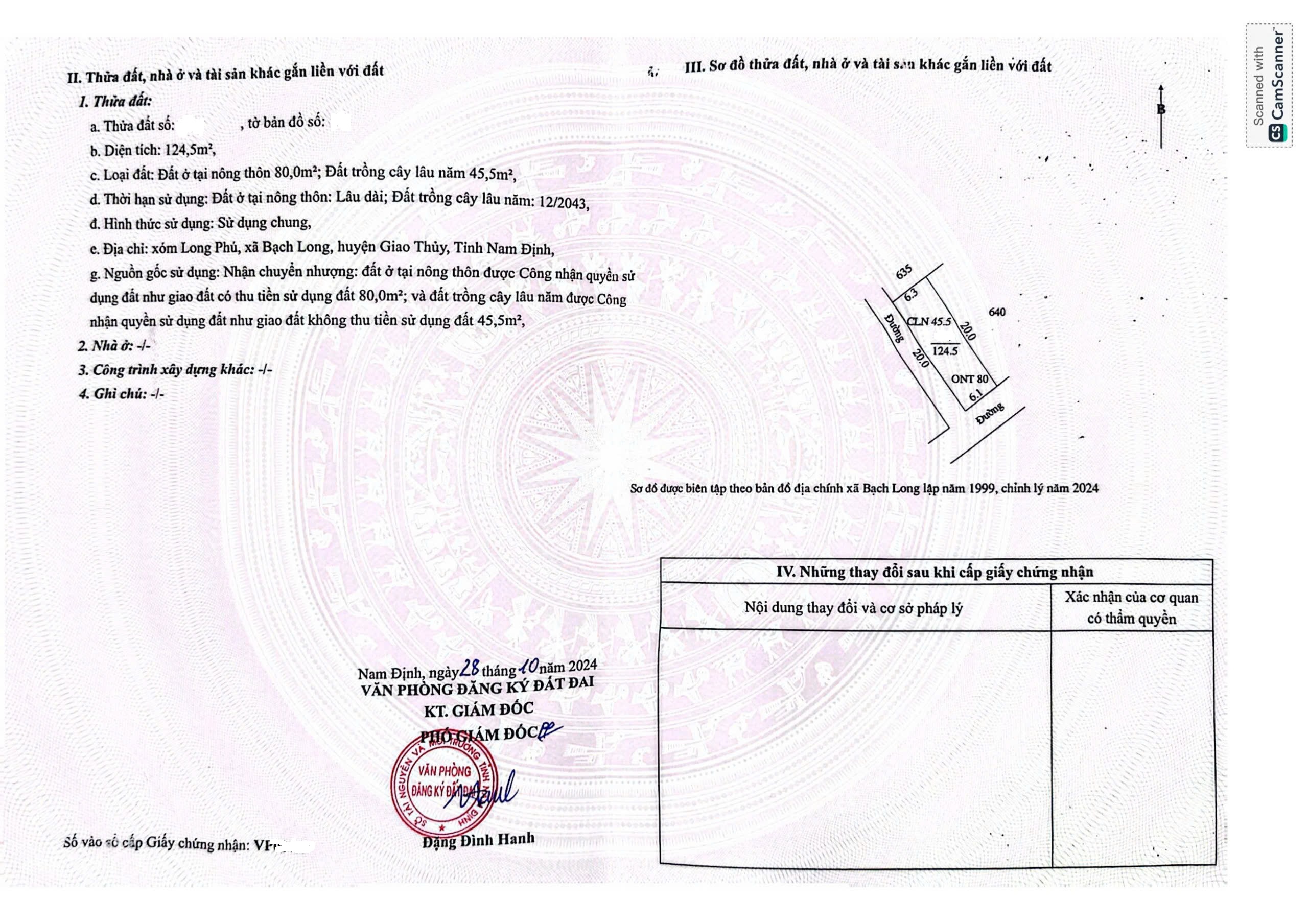 Bán lô 124,5m2 mặt đường Thiện Lâm, Xã Bạch Long, Huyện Giao Thủy, Tỉnh Nam Định sát Vsip, sân Golf (Nay là xã Giao Bình, tỉnh Ninh Bình)